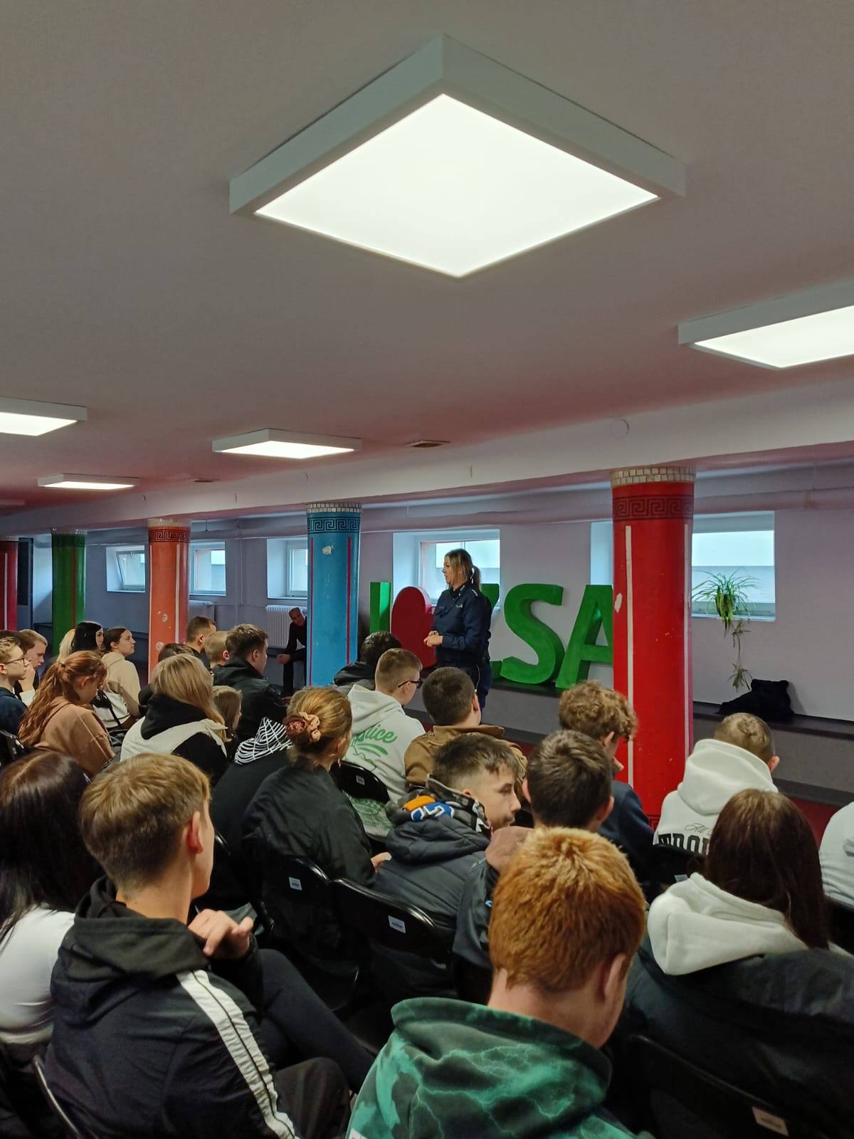 Dnia 29.10.2025 roku, odbyło się spotkanie klas pierwszych z przedstawicielem Komendy Powiatowej Policji w Sławnie.