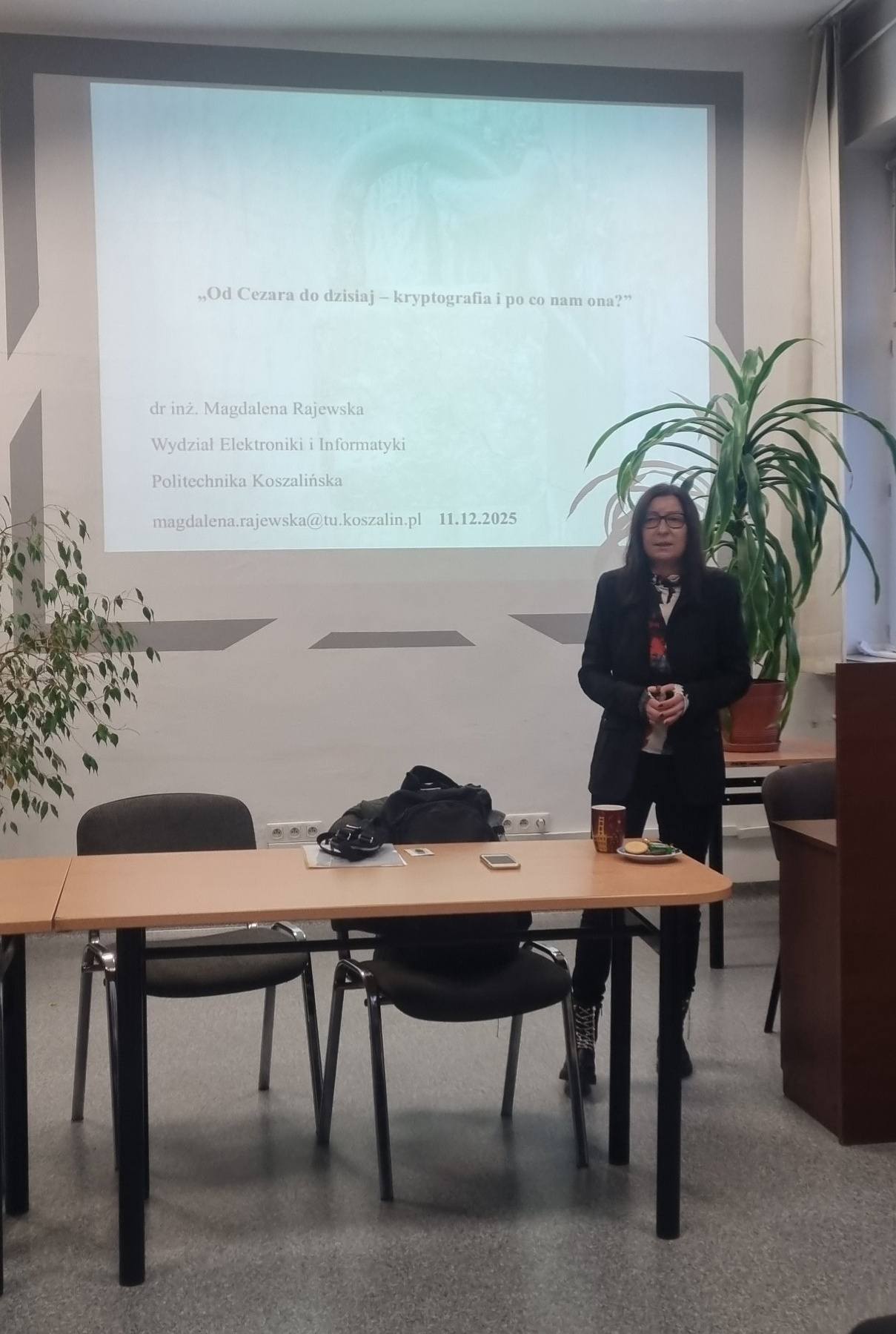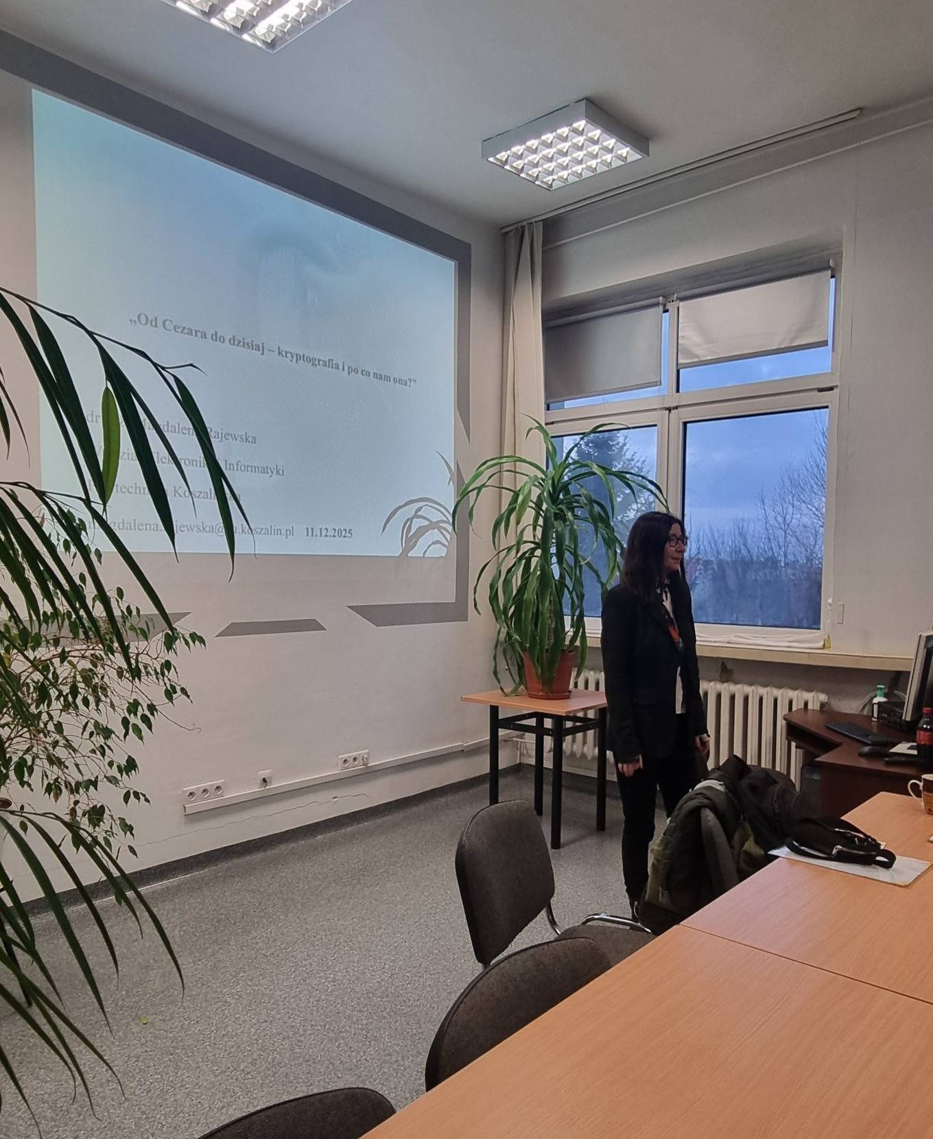 W czwartek, 11 grudnia 2025 roku, młodzież z kierunków technik programista i technik informatyk uczestniczyła w wykładzie przeprowadzonym przez dr inż. Magdalenę Rajewską, wykładowczynię Wydziału Elektroniki i Informatyki Politechniki Koszalińskiej.