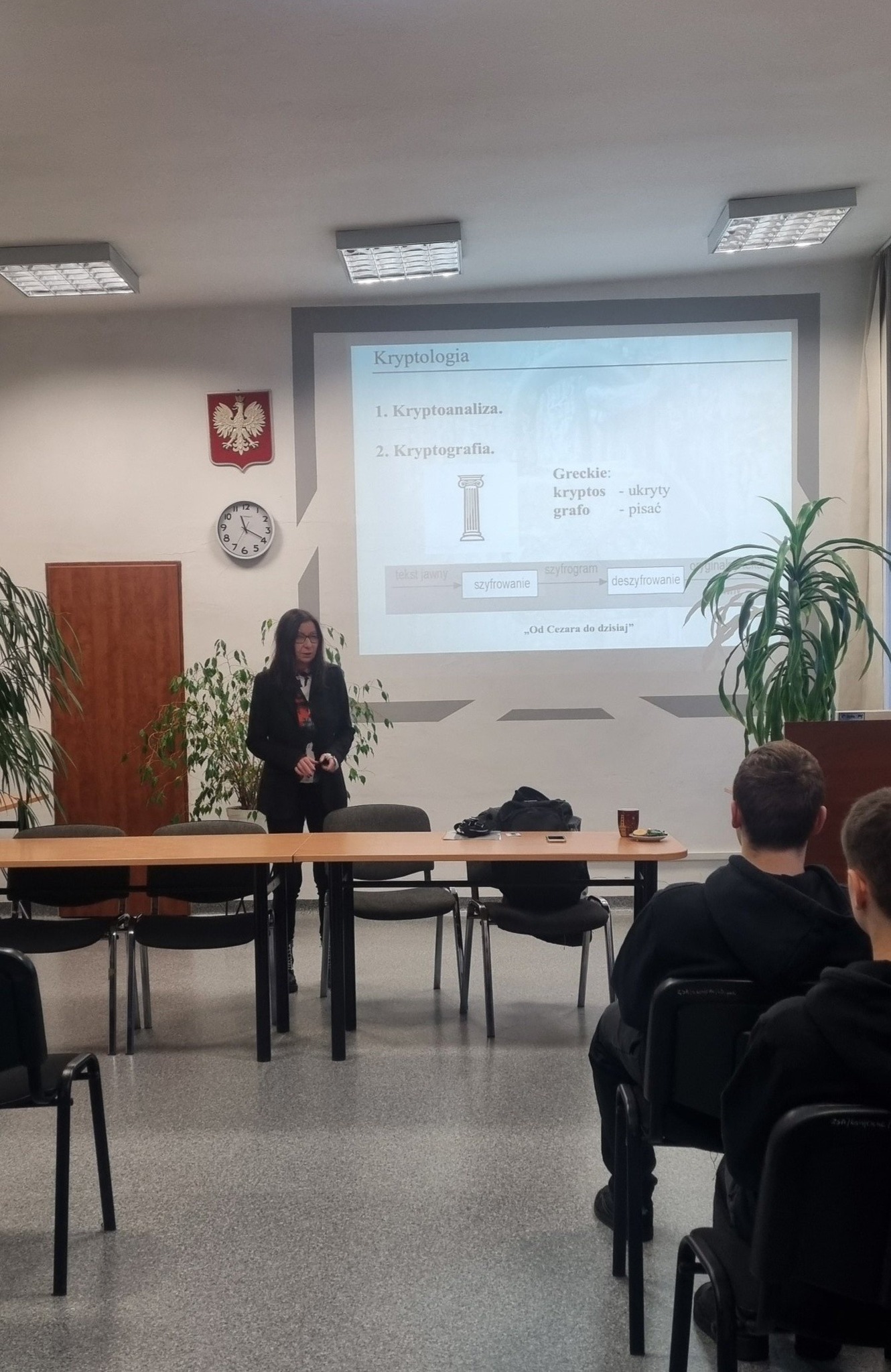 Spotkanie odbyło się w ramach współpracy ZSA z Politechniką Koszalińską. Temat wykładu "Od Cezara do dzisiaj - kryptografia i po co nam ona?" bardzo zaciekawił uczniów. Młodzież na wykładzie poznała metodę szyfrowania Cezara. Dowiedziała się gdzie stosujemy takie szyfrowanie oraz czy jest to sposób bezpieczny.